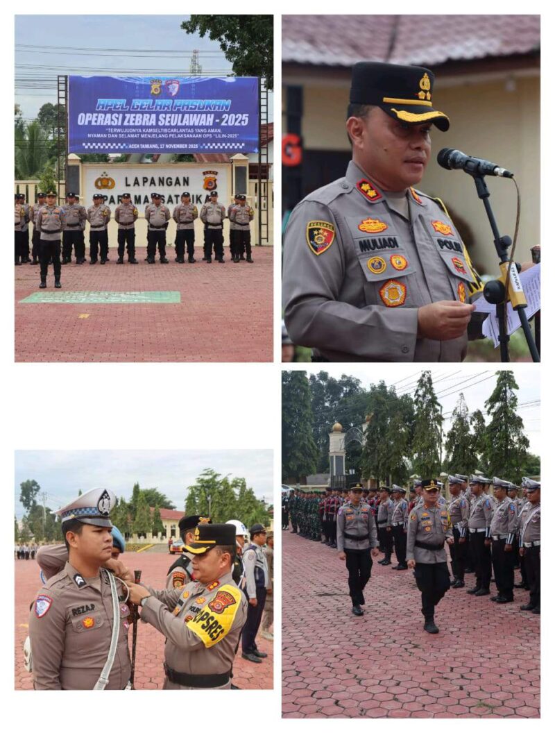 Kapolres Aceh Tamiang AKBP Mulidi, S.H, M.H memimpin Apel Gelar Pasukan Operasi Zebra Seulawah 2025 yang berlangsung di lapangan parama satwika Mapolres Aceh Tamiang, Senin (17/11/2025) pagi.