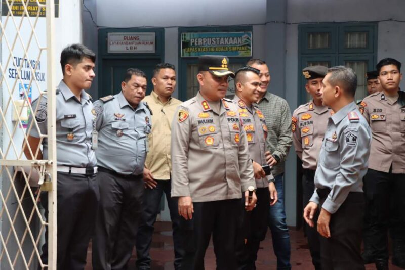 Kapolres Aceh Tamiang AKBP Muliadi, melakukan kunjungan ke Lapas Kelas II B Kuala Simpang yang berlokasi di Desa Dalam, Kecamatan Karang Baru, Kabupaten Aceh Tamiang. Kunjungan ini bertujuan untuk memastikan keamanan dan kesiapan pihak lapas dalam mengantisipasi potensi gangguan keamanan.