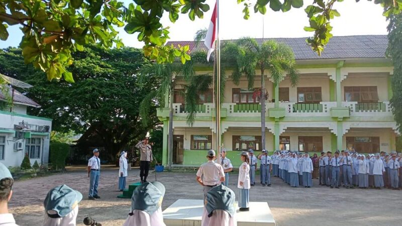 InfoLangsa.Com – Lhokseumawe , Upaya pencegahan kenakalan remaja terus diperkuat melalui pendekatan edukatif. Salah satunya dilakukan Kapolsek Banda Sakti, AKP Hanafiah, S.Ag., M.M, saat menjadi pembina upacara bendera sekaligus memberikan sosialisasi tentang bahaya tawuran, balap liar dan penyalahgunaan narkoba di SMA Negeri 2 Lhokseumawe, Desa Mon Geudong, Kecamatan Banda Sakti, Senin (27/4/2026).