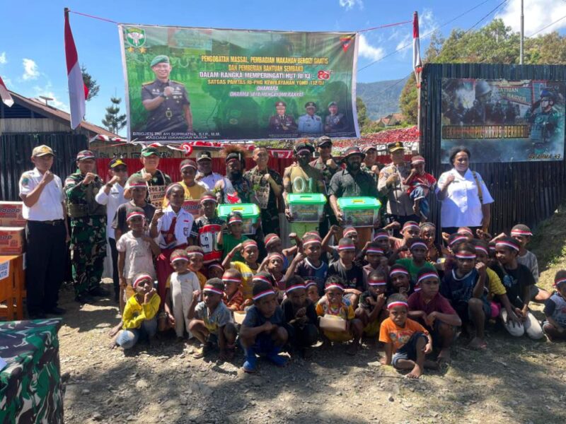 Kegiatan berlangsung dengan tertib, penuh kehangatan, dan sarat nuansa kekeluargaan. Lebih dari sekadar aksi sosial, momen ini memperkuat ikatan kemanusiaan antara TNI dan masyarakat Papua, menunjukkan bahwa kehadiran aparat negara tidak hanya di medan tugas militer, tetapi juga dalam ruang-ruang pelayanan dan empati.
