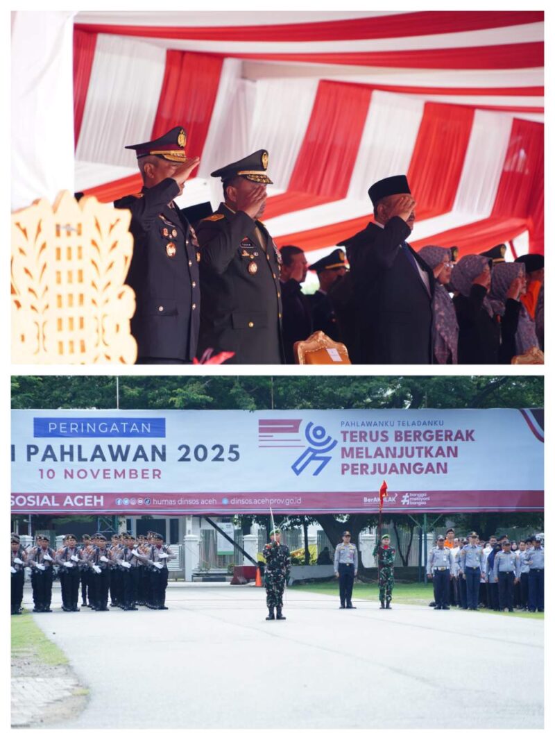 Upacara peringatan tersebut dipimpin oleh Wakil Gubernur Aceh, Bapak Fadhlullah, S.E., selaku Inspektur Upacara (Irup). Peringatan Hari Pahlawan tahun ini mengusung tema “Pahlawanku Teladanku, Terus Bergerak Melanjutkan Perjuangan”, yang mengandung makna mendalam agar seluruh rakyat Indonesia senantiasa meneladani semangat, keteladanan, dan pengorbanan para pahlawan bangsa yang telah berjuang tanpa pamrih demi tegaknya Negara Kesatuan Republik Indonesia.