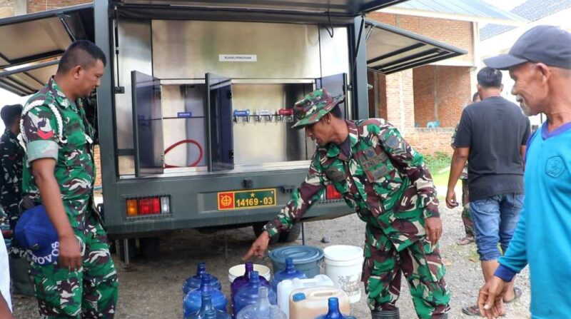 “Penyediaan air bersih siap minum ini adalah bentuk nyata kehadiran TNI di tengah masyarakat. Kami berharap bantuan ini dapat meringankan beban warga terdampak banjir, khususnya dalam memenuhi kebutuhan dasar akan air bersih,” ujar Letkol Inf Novi Widyanto.