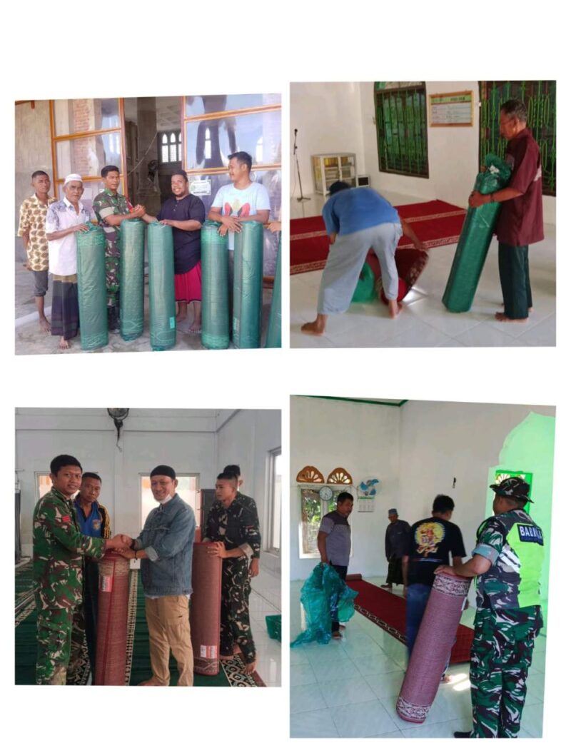 Wilayah Koramil 05/Tamiang Hulu sebanyak 5 Gulung ambal dan cat 6 kaleng 25 kg di Mesjid Nurul Fallah.