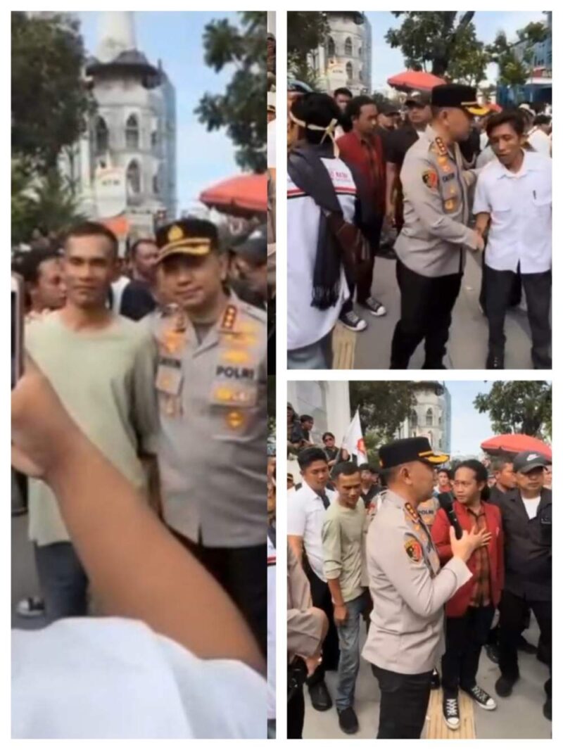 Kapolrestabes Medan Kombes Dr. Jean Calvijn Simanjuntak terlihat berbaur bersama Massa Unjuk Rasa di Depan Kantor Gubernur Sumut, Senin(10/11/2025).