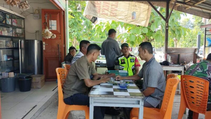 Babinsa Koramil 06/Manyak Payed Serda Aprian melaksanakan monitor kegiatan masyarakat dan melaksanakan komunikasi sosial (komsos) dengan tokoh pemuda dan warga desa binaan di Kedai Kopi Desa Ie Bintah, Kecamatan Manyak Payed, Kabupaten Aceh Tamiang. Jumat (24/04/2025)