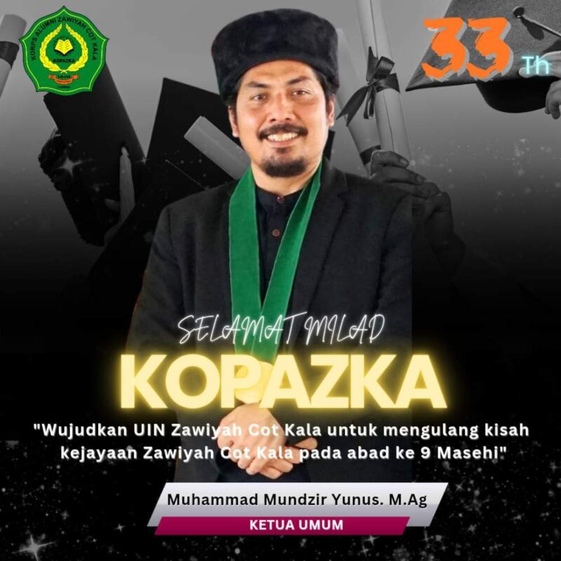 Ketua Umum Pengurus Pusat Korps Alumni Zawiyah Cot Kala (PP Kopazka) IAIN Langsa M.Mundzir Yns, SH.I, M.Ag meminta Rektor IAIN Langsa Prof.Dr. Ismail Fahmi Arrauf Nst, MA untuk mencantumkan kembali nama “Zawiyah Cot Kala” pada saat usul tranformasi IAIN Langsa menjadi UIN Zawiyah Cot Kala Langsa.