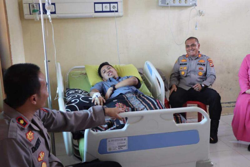 Aceh Tamiang – Infolangsa.com Kapolres Aceh Tamiang AKBP Muliadi, S.H, M.H didampingi Wakapolres KOMPOL Dheny Firmandika, S.A.B, S.I.K dan Ketua Bhayangkari Cabang Aceh Tamiang Ny. Ully Muliadi beserta Penggurus Bhayangkari menjenguk personel Polres Aceh Tamiang Yaitu Kapolsek Karang Baru IPTU Charlie Yudha Virajati,S.Tr.k yang saat ini tengah menjalani perawatan di RSUD Aceh Tamiang. Senin 19 Mei 2025.