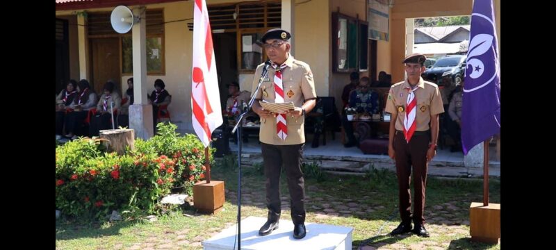 Waka Orgakum Kwarcab Aceh Jaya Cut Bang Hasnul Fuad, SH sebagai Pembina Upacara HUT Pramuka ke-64
