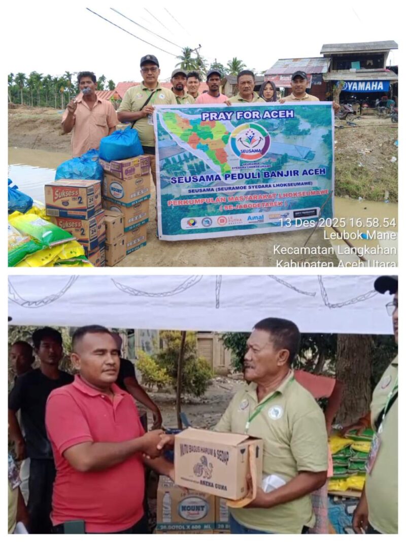 Komunitas perantau asal Lhokseumawe yang tergabung dalam Seuramoe Syedara Lhokseumawe (Seusama) kembali menunjukkan kepedulian terhadap kampung halaman dengan menyalurkan bantuan kemanusiaan tahap II kepada warga terdampak banjir dan tanah longsor di Kabupaten Aceh Utara, Sabtu (13/12/2025).
