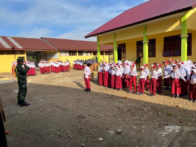 Babinsa Koramil 04/Bendahara, Kodim 0117/Aceh Tamiang Sertu Iskandar Muda bertindak sebagai Inspektur Upacara (Irup), pada pelaksanaan upacara bendera di SDN Lubuk Batil Kecamatan Bendahara, Kabupaten Aceh Tamiang. Senin (21/04/2025)