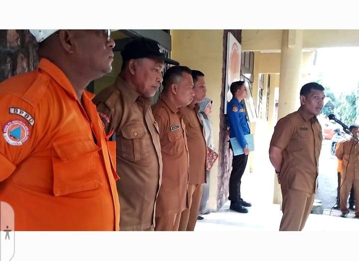 Foto : Kepala BPBD Langsa. Nursal Saputra S.STP. M.A.P. mengambil kegiatan Apel Rutin Setiap Hari seni Pagi .menyampaikan tentang Tugas-tugas pokok BPBD Langsa(2/6)