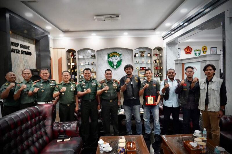 Panglima Komando Daerah Militer Iskandar Muda (Pangdam IM), Mayor Jenderal TNI Niko Fahrizal, M.Tr.(Han), menerima kunjungan audiensi dari Ketua House of Kingdom Aceh Motorcycle Club (HOKA MC) Taufieq Rusmar, ST, beserta rombongan di ruang kerjanya, Kamis (14/8/2025). Pertemuan ini menjadi momentum penting untuk mempererat hubungan silaturahmi antara komunitas pecinta sepeda motor klasik dan custom dengan jajaran TNI, khususnya Kodam Iskandar Muda.