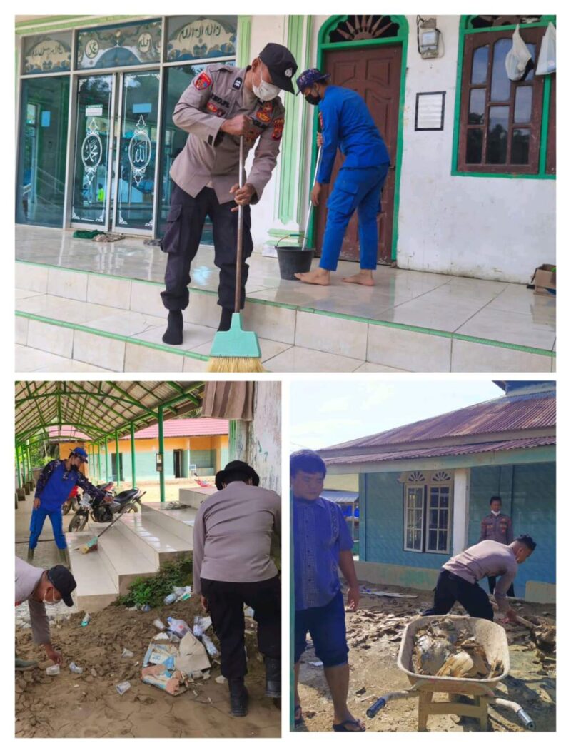 Kepolisian Republik Indonesia melaui Polres Aceh Tamiang terus menerjunkan personilnya dari awal pasca bencana hingga saat ini untuk membantu serta membersihkan fasilitas umum maupun rumah rumah ibadah dari sisa material dan lumpur akibat banjir bandang.