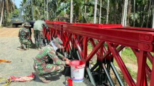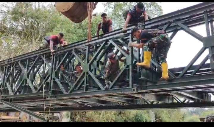 Dengan kerja keras dan semangat pengabdian, prajurit Satgas Gulbencal Yonzipur 5/ABW secara intensif melaksanakan setiap tahapan pekerjaan, mulai dari perakitan struktur rangka baja modular, pemasangan lantai jembatan, hingga penguatan pondasi dan oprit penghubung. Seluruh proses dilakukan secara cermat dan terukur, dengan tetap mengedepankan standar teknis konstruksi serta faktor keselamatan.