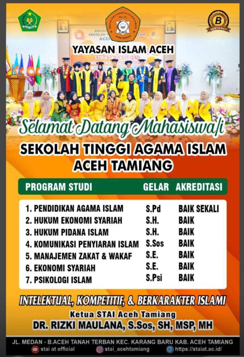 Sekolah Tinggi Agama Islam (STAI) Aceh Tamiang kembali membuka penerimaan mahasiswa baru Program Sarjana Kelas Khusus Karyawan mulai pada 1 Juli hingga sampai 30 September 2025 mendatang.