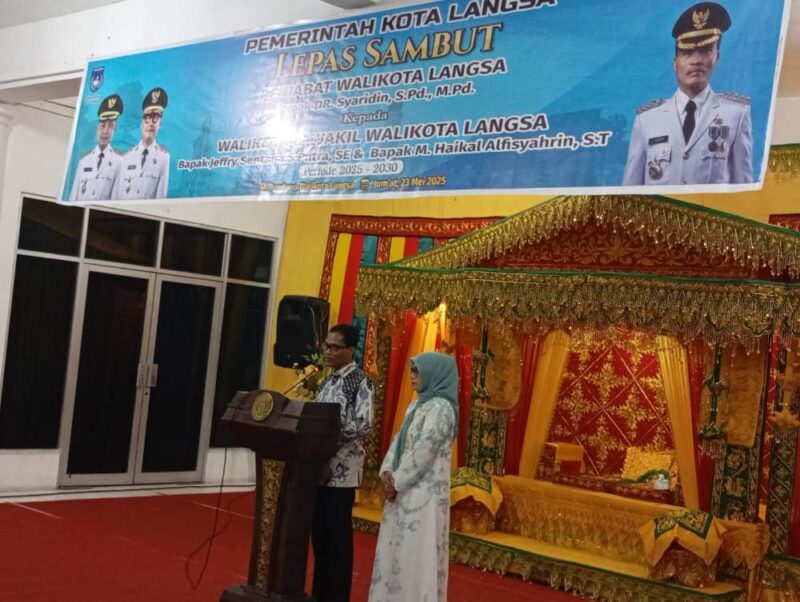 Pemerintah Kota Langsa melaksanakan gelar lepas sambut Penjabat Walikota Langsa DR. Syahriddin, S.Pd., M.Pd Kepada Walikota dan Wakil Walikota Langsa Jefry Santana S.Putra, SE dan M. Haikal Alfisyahrin, ST Periode 2025-2030