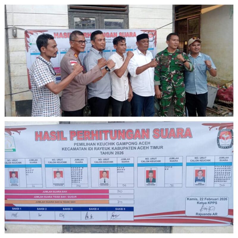Pemilihan Geuchik Desa Gampong Aceh, Kecamatan Idi Rayeuk, Kabupaten Aceh Timur, yang digelar pada Kamis (21/01/2026) berlangsung dengan aman, tertib, dan kondusif.