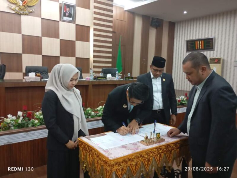 Tanda Tangani Nota Kesepakatan Bersama Terhadap KUA-PPAS APBK Langsa 2026 dilakukan oleh Wakil Walikota Langsa bersama Muhammad Haikal Alfisyahrin, ST Wakil Ketua I DPRK Langsa Burhansyah, SH,