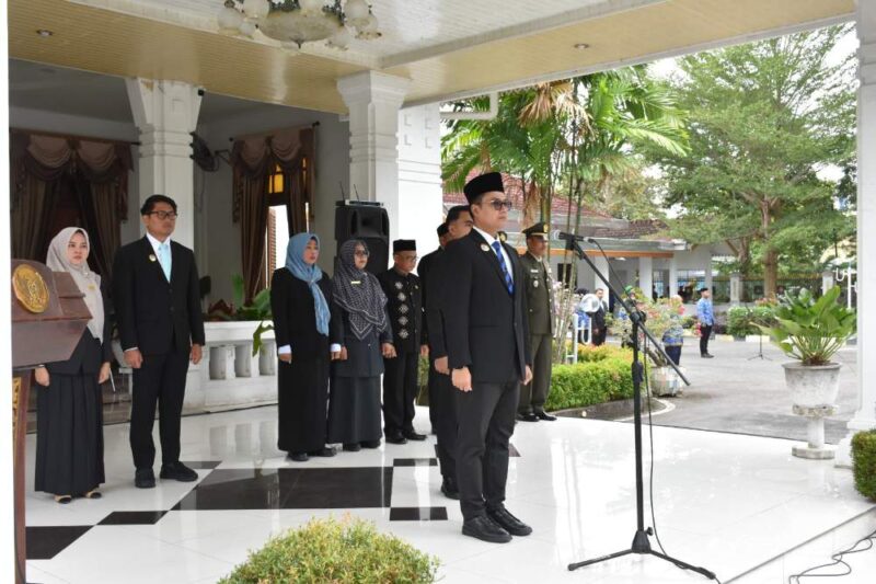 Bertindak sebagai Inspektur Upacara Walikota Langsa Jeffry Sentana S Putra, SE, dan Komandan Upacara Pasiter Kodim 0104/Aceh Timur Lettu Kavaleri Muhammad Irwan, di Halaman Pendopo Walikota Langsa, Rabu 1 Oktober 2025.