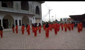 sejumlah mahasiswa sedang persiapkan latihan pencak silat tapak suci di lapangan komplek sekolah Dayah MBS Bireuen.