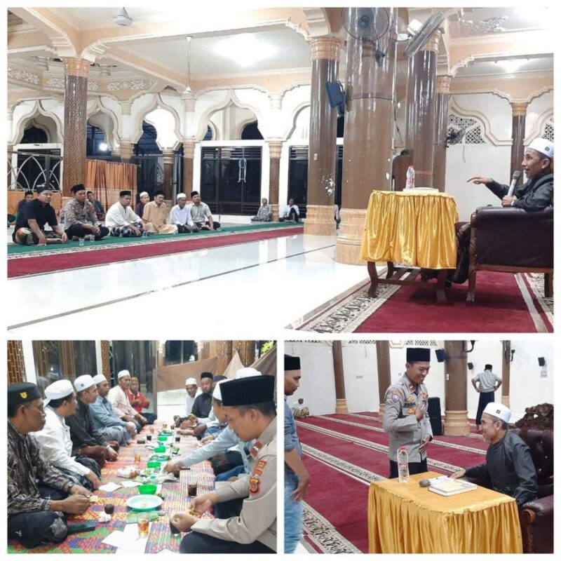 Pengajian rutin yang digelar di Masjid Baiturrahim, Gampong Meunasah Teungoh, Kecamatan Pantee Bidari, Kabupaten Aceh Timur, Minggu (19/04/2026) malam, menjadi wadah mempererat silaturahmi antara aparat kepolisian dan masyarakat.