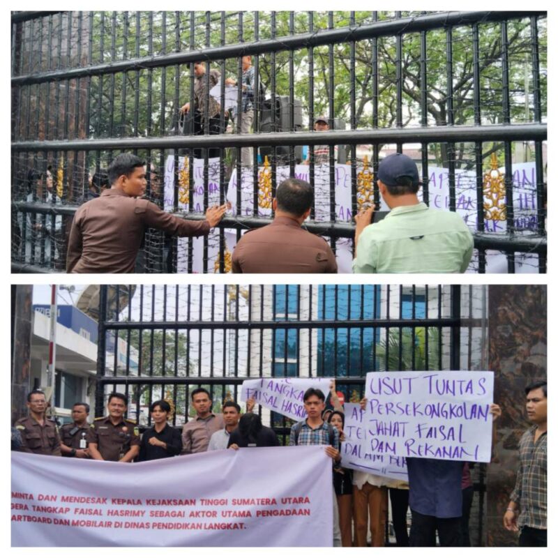 Ketua Umum PERMAK Asril Hasibuan yang memimpin langsung aksi di depan Kejati Sumut mengatakan mantan Pj Bupati Langkat Faisal Hasrimi diduga menerima fee Rp 10 miliar lebih dari proyek smartboard Rp. 50 miliar dan proyek moubiler Rp. 50 miliar pada tahun 2024.