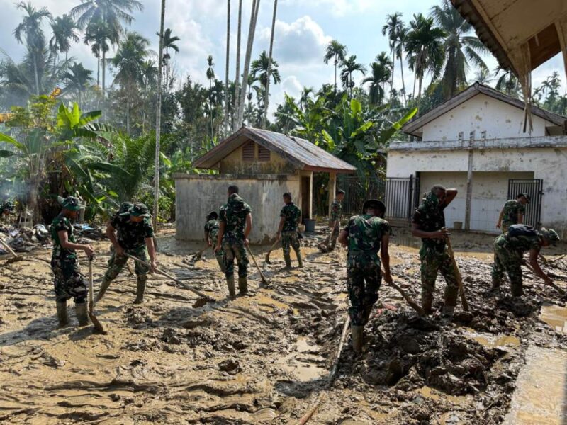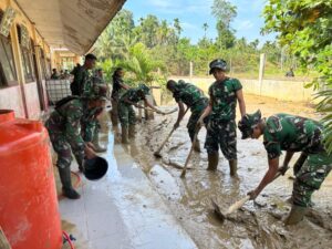 Satgas kemanusiaan tersebut dipimpin langsung oleh Danyonif TP 837/KT, Letkol Inf Heru Dwi Santoso, S.I.P., M.M. Personel TNI bersama masyarakat setempat bahu-membahu melakukan karya bakti pembersihan sisa-sisa lumpur dan material banjir yang menggenangi sekolah-sekolah di wilayah terdampak.