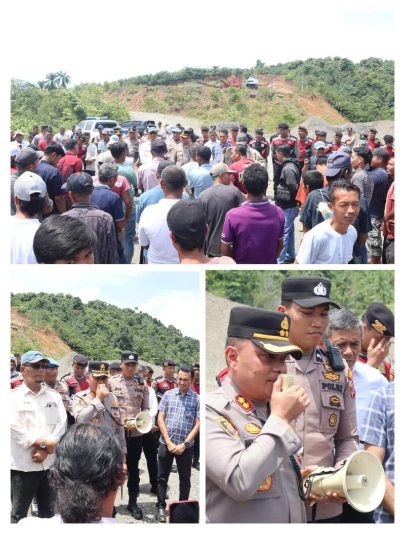 Kapolres Aceh Tamiang AKBP Muliadi, S.H, M.H memimpin langsung pengamanan aksi damai yang dilakukan oleh masyarakat di desa Kalou, Kecamatan Tamiang Hulu. 14 Oktober 2025.