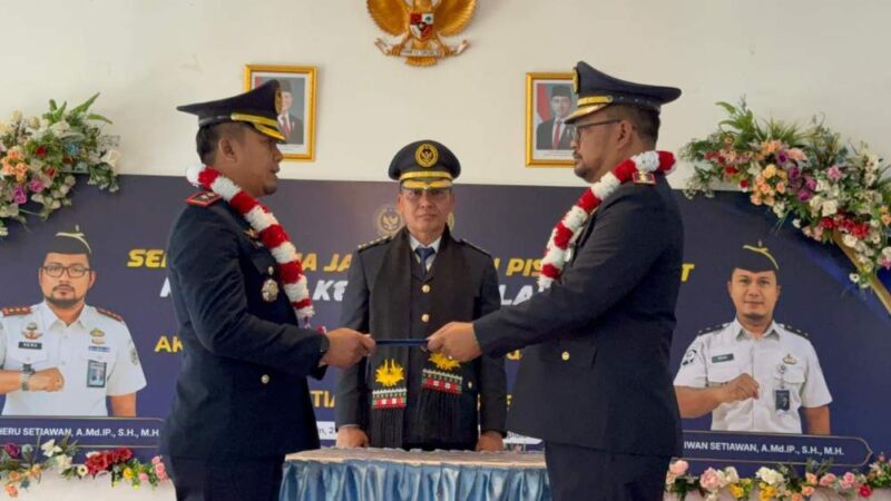 Suasana khidmat menyelimuti Aula Lembaga Pemasyarakatan (Lapas) Kelas IIB Blangpidie saat prosesi estafet kepemimpinan resmi digulirkan. Kepala Bagian Tata Usaha dan Umum Kantor Wilayah Direktorat Jenderal Pemasyarakatan (Ditjenpas) Aceh, Yusrizal, hadir langsung memimpin acara Serah Terima Jabatan (Sertijab) dari Akhmad Heru Setiawan kepada Iwan Setiawan, Senin (27/04/2026).