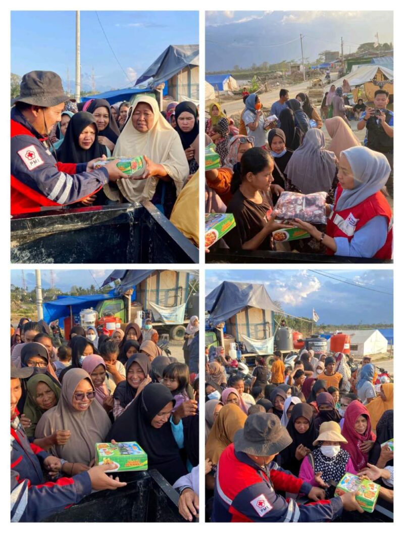 PMI Aceh berkolaborasi dengan Rumah Sakit Amal Sehat Wonogiri menggelar aksi kemanusiaan dengan membagikan paket iftar (buka puasa) dan mukena kepada para pengungsi terdampak banjir bandang di Desa Sukajadi, Kabupaten Aceh Tamiang, Minggu, 01/02/2026