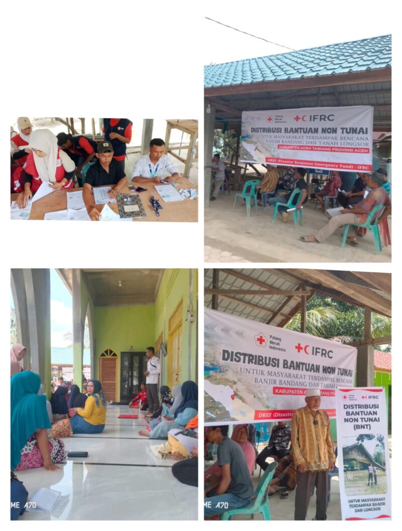 Palang Merah Indonesia (PMI) Kabupaten Aceh Tamiang menyalurkan Bantuan Non Tunai (BNT) berupa uang tunai kepada warga terdampak banjir bandang di Desa Sekerak Kiri, Kecamatan Sekerak, Senin (20/4/2026).