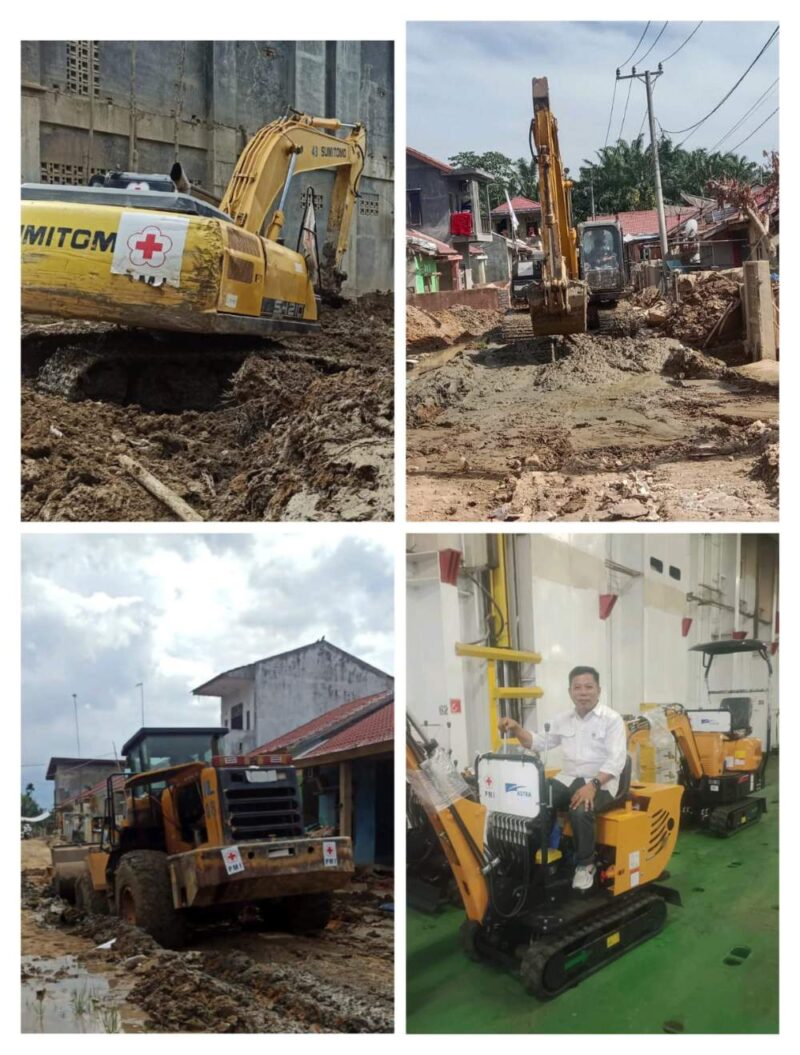 “Banjir bandang meninggalkan banyak material seperti lumpur, batang kayu, dan sampah yang tidak mungkin dibersihkan secara manual. Dengan dukungan alat berat dari PMI dan bantuan PT Bukaka, proses pembersihan bisa dilakukan lebih cepat sehingga lingkungan masyarakat dapat kembali layak huni,” ujar Muslim M. Aji.