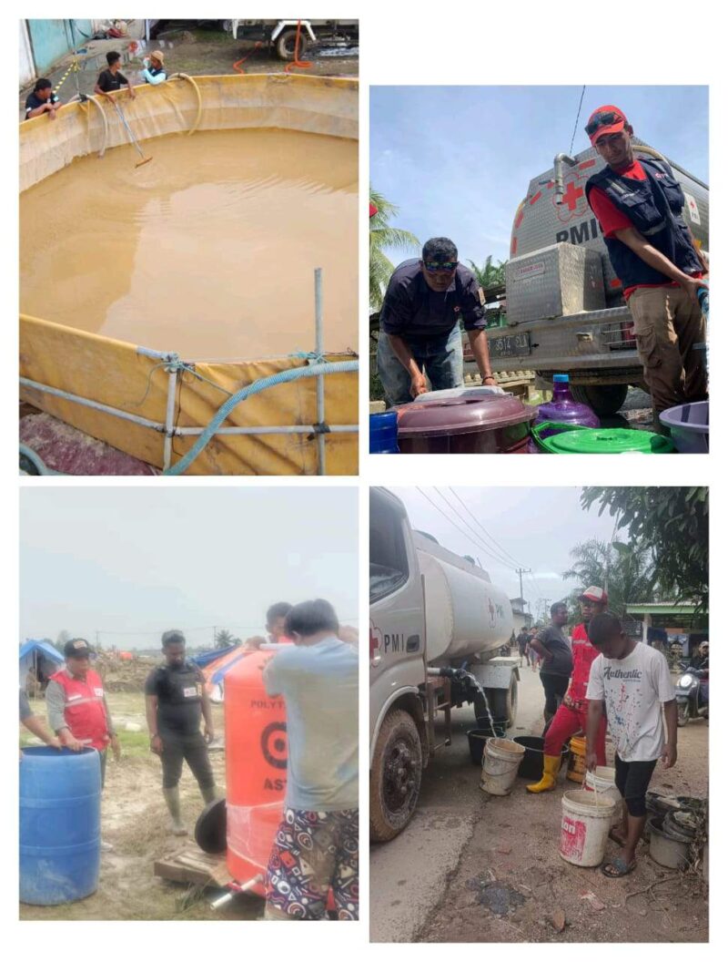 Palang Merah Indonesia (PMI) memberikan layanan Water Treatment melalui tim Water, Sanitation and Hygiene (WASH) guna memenuhi kebutuhan air bersih masyarakat di Kabupaten Aceh Tamiang.