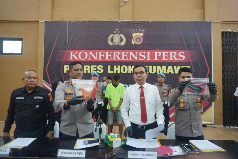 “Penangkapan HB berawal dari penyelidikan intensif terkait transaksi sabu di wilayah Blang Mangat, Kota Lhokseumawe. Setelah terendus transaksi bergeser ke Tanah Jambo Aye, tim bergerak cepat mengamankan tersangka disana,” jelas Kasat Narkoba.