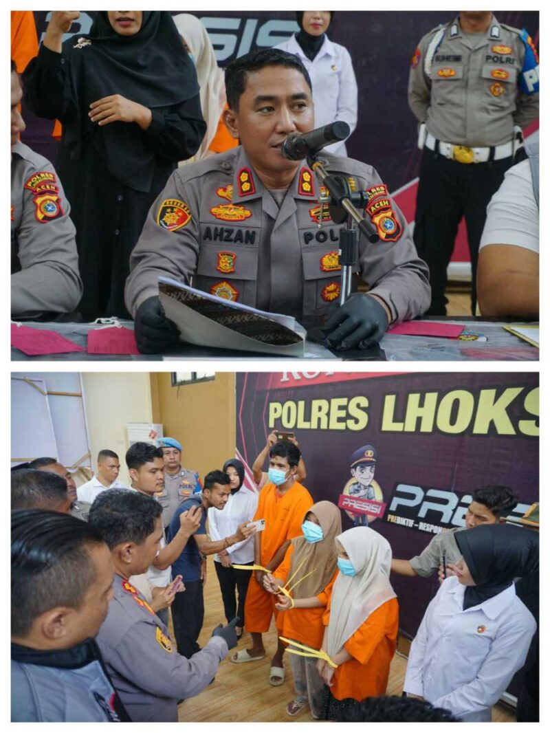 Pengungkapan ini disampaikan saat Konferensi Pers Polres Lhokseumawe yang dipimpin langsung oleh Kapolres Lhokseumawe AKBP Dr. Ahzan., S.H., S.I.K., M.S.M., M.H didampingi Wakapolres Lhokseumawe Kompol Salmidin, S.E., M.M yang berlangsung di Gedung Serbaguna Wirasatya Polres Lhokseumawe, Senin (5/5/2025) pagi. Tampak turut hadir dalam konferensi pers tersebut Kasat Reskrim Iptu Yudha Prasetya, S.H, Kasi Humas Salman Alfarasi, S.H., M.M dan Tgk. Ikhwansyah, Kepala Dinas Syariat Islam dan Pendidikan Dayah Kota Lhokseumawe.