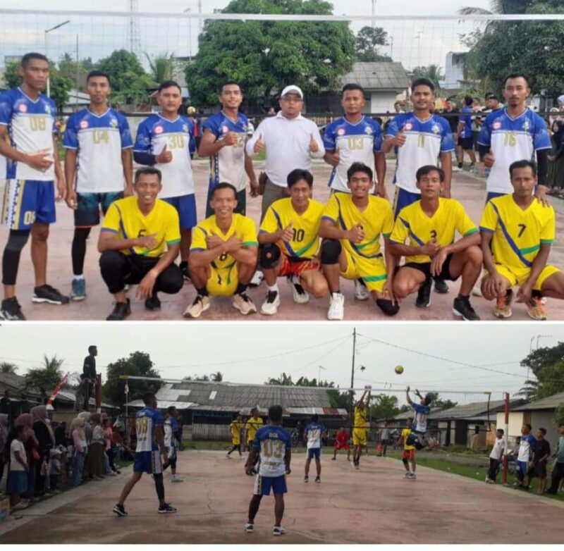 Turnamen voli yang diikuti oleh beberapa tim dari berbagai divisi berlangsung di lapangan olahraga komplek perumahan Dusun Kamboja Kampung (Desa) Sungai Liput Kecamatan Kejuruan Muda Kabupaten Aceh Tamiang, Jum’at 15 Agustus 2025.