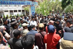 Tampak hadir saat menanggapi aksi: Ketua dan Anggota DPRK Langsa, Kapolres Langsa, Kajari Langsa, Dandim 0104/Atim diwakili Danramil 02/Langsa, Sekda, Asisten, dan Pimpinan OPD.