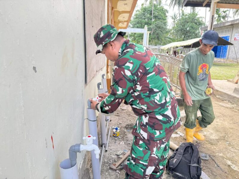 Pekerjaan pemasangan kran air pada MCK sasaran pertama di Desa Jeumpa Sikureng saat ini masih terus berlangsung. Kegiatan tersebut merupakan bagian dari program TNI Manunggal Membangun Desa (TMMD) yang tengah dilaksanakan di wilayah tersebut. Senin (2/3/2026).