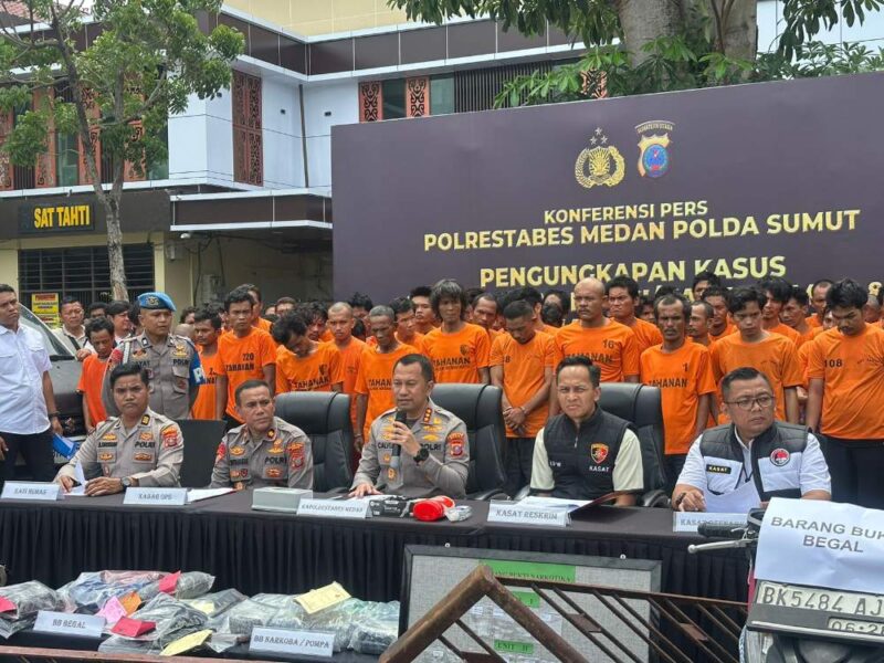 Beri rasa Aman kepada Masyarakat, Polrestabes Medan berhasil mengungkap 61 kasus berbagai tindak kejahatan yang terdiri dari begal, “rayap besi”, “rayap kayu” dan pompa (sabu). Dari 61 kasus yang berhasil diungkap, tim juga berhasil meringkus 87 orang tersangka.