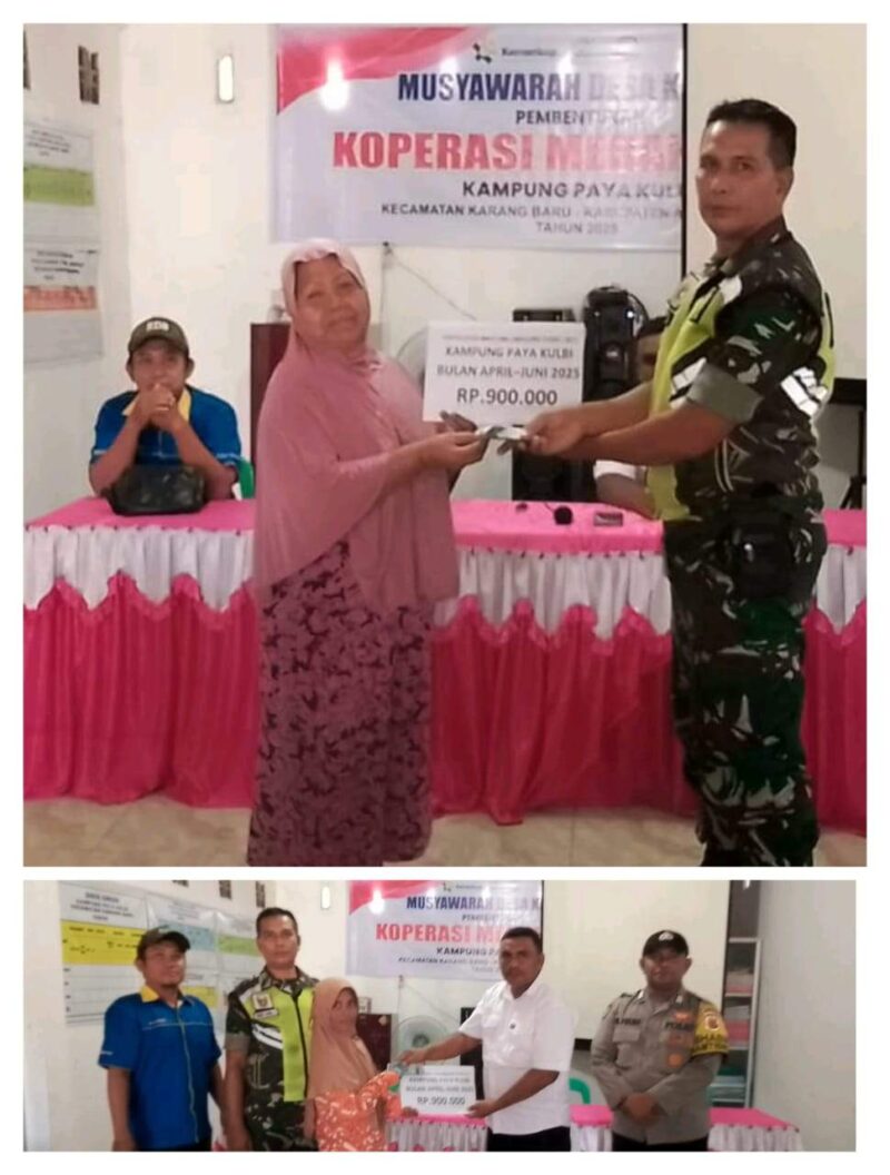 Babinsa Koramil 02/Karang Baru Serda Hendrik menghadiri sekaligus lakukan pendampingan dan pengawalan kegiatan penyaluran bantuan langsung tunai dana desa (BLT DD) tahap 2025, Bertempat di Kantor Desa Paya Kulbi, Kecamatan Karang Baru, Kabupaten Aceh Tamiang. Selasa (03/06/2025)