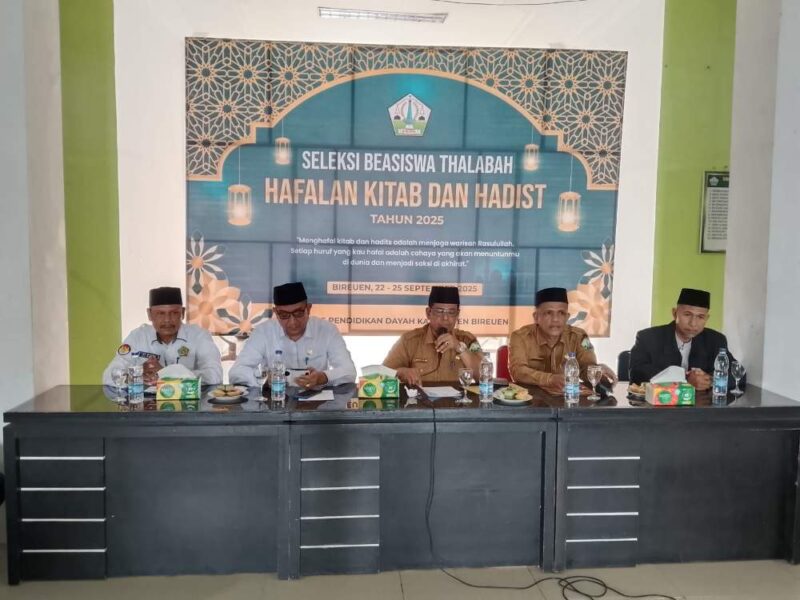 1.025 santri dayah dari berbagai gampong dalam Kabupaten Bireuen ikut ambil bagian dalam ajang Seleksi Beasiswa Thalabah Hafalan Kitab dan Hadist yang digelar Dinas Pendidikan Dayah Kabupaten Bireuen. Kegiatan ini berlangsung mulai Senin, 22 hingga 25 September 2025 di Aula Dinas Pendidikan Dayah, dan resmi dibuka oleh Bupati Bireuen yang diwakili Assiten 1, Mulyadi SH, MM.