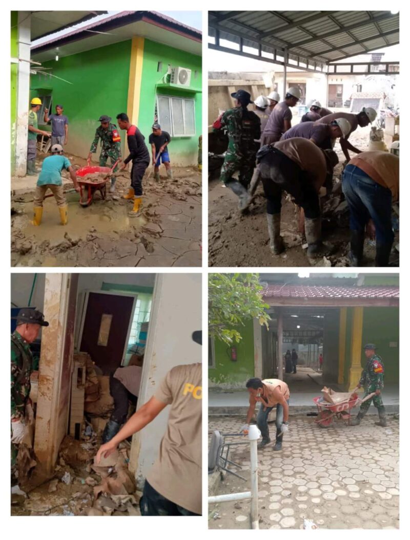 Pembersihan difokuskan pada sejumlah ruangan dan area pelayanan puskesmas yang terendam banjir. Personel gabungan TNI–Polri tampak bahu-membahu membersihkan lumpur, sampah, serta sisa material banjir yang mengganggu aktivitas pelayanan kesehatan.