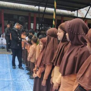 Sekolah Menengah Atas (SMAN) 1 Peusangan bersama Organisasi Siswa Intra Sekolah (OSIS) menyantuni Puluhan anak yatim dari SDN 12 Peusangan Kecamatan Peusangan Kabupaten Bireuen, Kamis (16/10/2025).