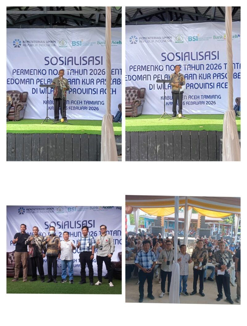 Kepala Dinas Kopridag Aceh Tamiang, Ibnu Azis, membuka acara sosialisasi dan menyampaikan sambutan dari Bupati Aceh Tamiang . “Atas nama pemerintah kabupaten Aceh Tamiang, saya sangat mengapresiasi kegiatan sosialisasi ini dalam rangka diseminasi peraturan menteri koordinator bidang perekonomian no 2 tahun 2026 tentang pedoman pelaksanaan KUR, sebagai bentuk kepedulian pemerintah terhadap debitur KUR pasca banjir yang terdampak di 3 provinsi yakni Aceh, Sumatra Utara, dan Sumatra Barat,” ujarnya.