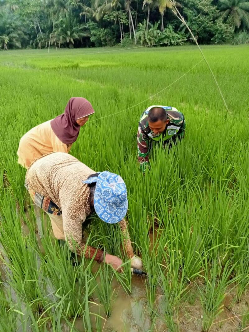 Babinsa Koramil 04/Bendahara Sertu Iskandar Muda melaksanakan pendampingan Ketahanan Pangan di wilayah binaannya, milik ibuk Kunyil yang merupakan petani di Desa Tanjung Lipat I, Kecamatan Bendahara, Kabupaten Aceh Tamiang. Selasa (11/03/2025)
