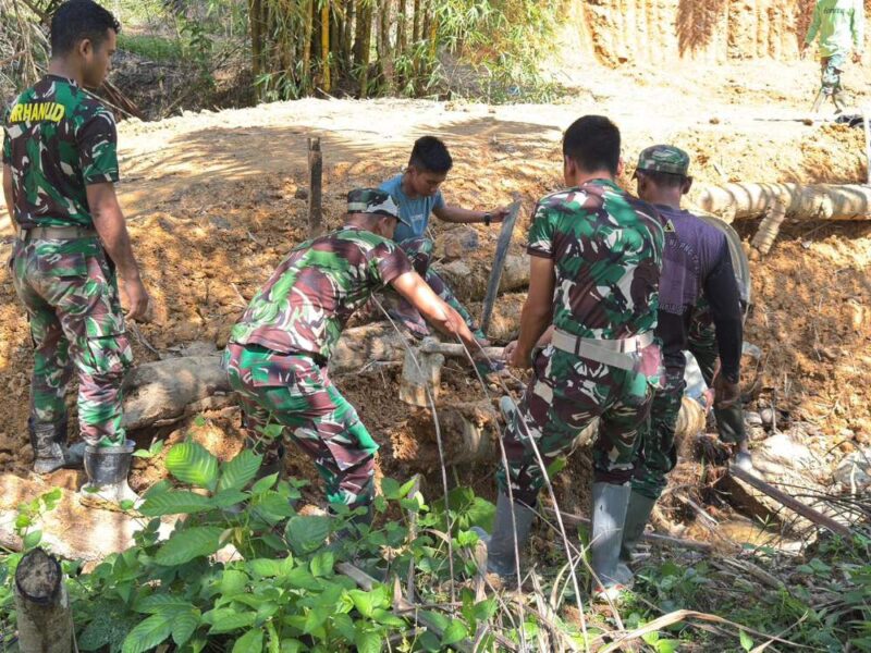 Pengerjaan sasaran fisik dalam program TNI Manunggal Membangun Desa (TMMD) Ke-127 Kodim 0111/Bireuen terus berlangsung dengan penuh semangat. Salah satu kegiatan yang dilakukan saat ini adalah pembersihan sisi kanan gorong-gorong sebagai persiapan pemasangan batu di Desa Jeumpa Sikureung, Kabupaten Bireuen. Jumat (6/3/2026).