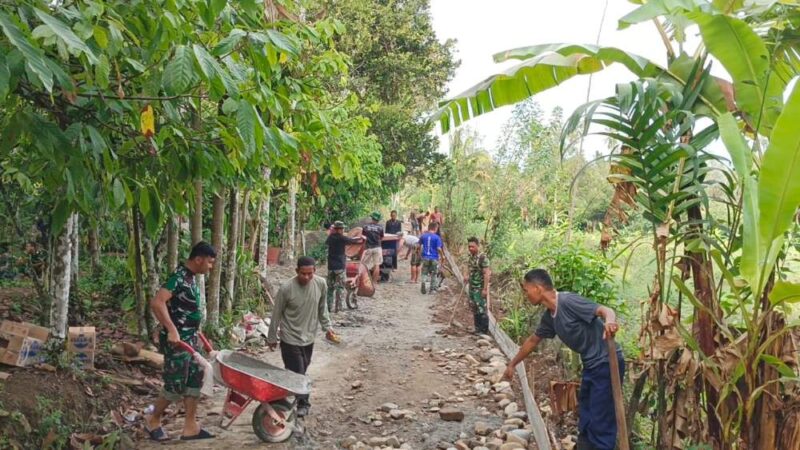 Terlihat suasana kebersamaan yang kuat antara prajurit Satgas TMMD dengan warga setempat. Mereka bahu-membahu menyelesaikan pekerjaan hingga tuntas, mencerminkan semangat gotong royong yang menjadi ciri khas pelaksanaan TMMD di seluruh tanah air.