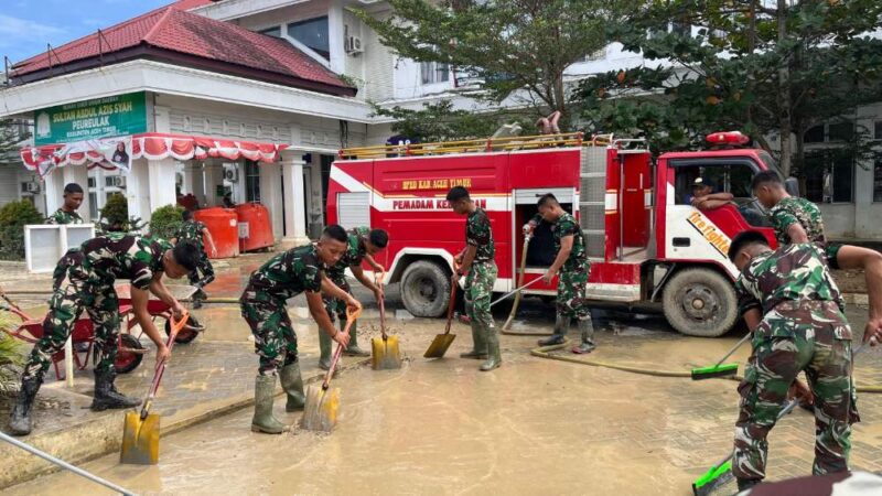 Wujud kepedulian dan respons cepat terhadap dampak bencana alam kembali ditunjukkan oleh TNI. Personel Kodim 0104/Aceh Timur bersama Yonif TP 853/Bawar Rejebur melaksanakan kegiatan karya bakti pascabencana banjir di enam titik fasilitas umum di wilayah Kecamatan Idi Rayeuk, Kabupaten Aceh Timur, Minggu (21/12/2025).