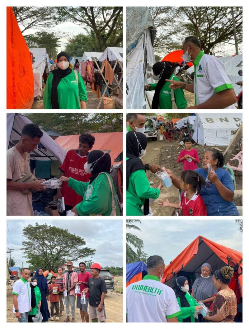 “Kemarin Minggu tgl 28 Desember 2025 kamipun mengunjugi tenda – tenda para pengungsi yang rumahnya hilang/hanyut untuk membagikan 1000 produk Imunudulator utk dewasa dan anak – anak yang didonasikan Oleh PT. Unihealth”.