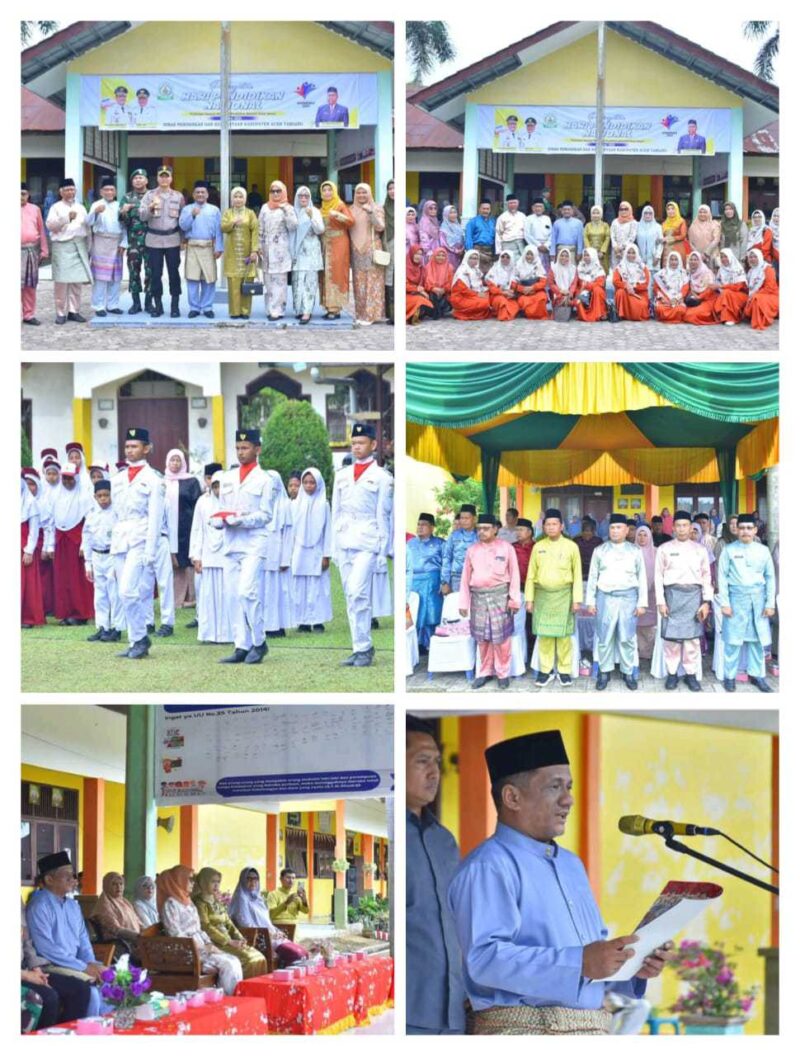 Wakil Bupati Aceh Tamiang, Ismail, SE.I memimpin upacara peringatan Hari Pendidikan Nasional (Hardiknas) tahun 2025 yang digelar di Halaman SMPN 4 Percontohan Karang Baru, Senin, (5/5/25).